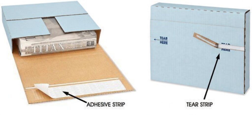 Adhesive strip seals carton shut.