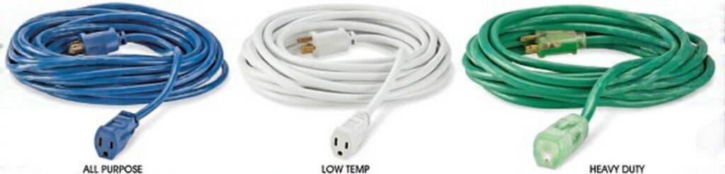 Low Temp Extension Cords – Stays flexible in extreme cold down to -50ºC (-58ºF). Oil, chemical and UV resistant.