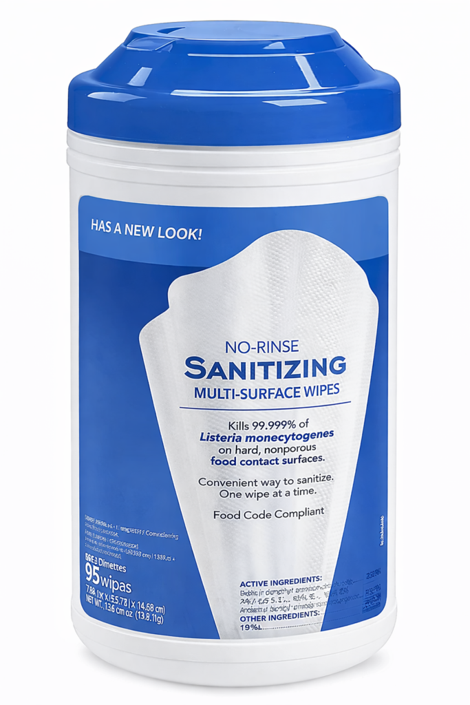 Easy-to-use textured wet wipes help clean up in a hurry.