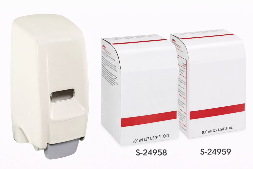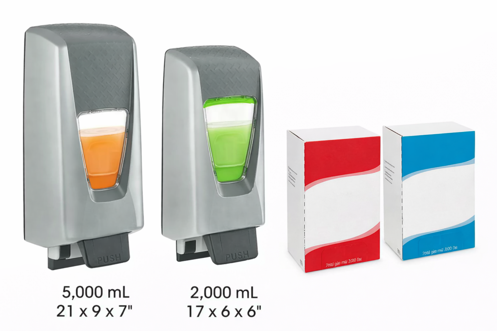 5,000 mL Jumbo Dispenser – Large capacity for high-traffic areas. 2,500 applications per cartridge.