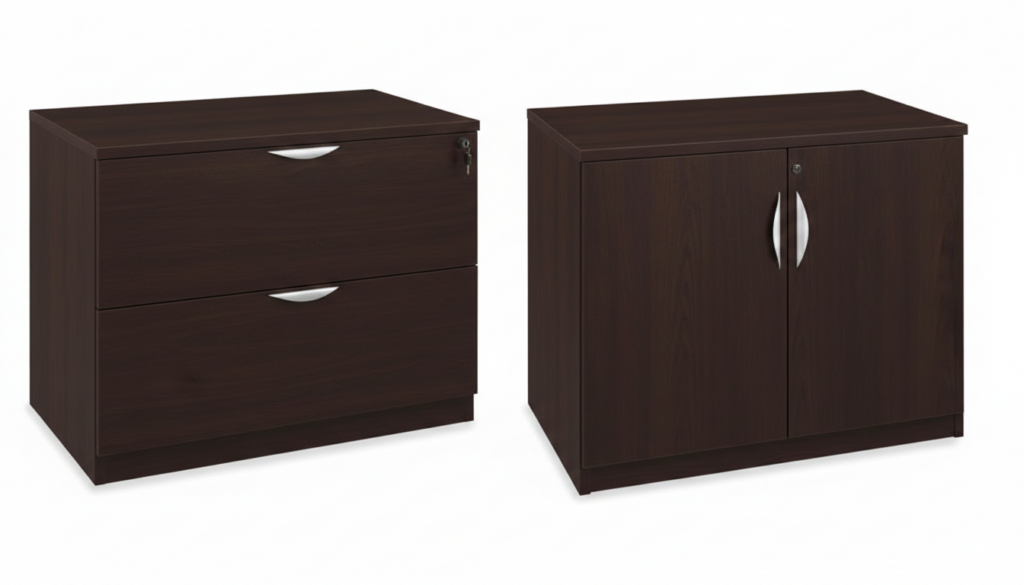 Lateral File Cabinet – 2 lockable drawers for letter and legal size documents.