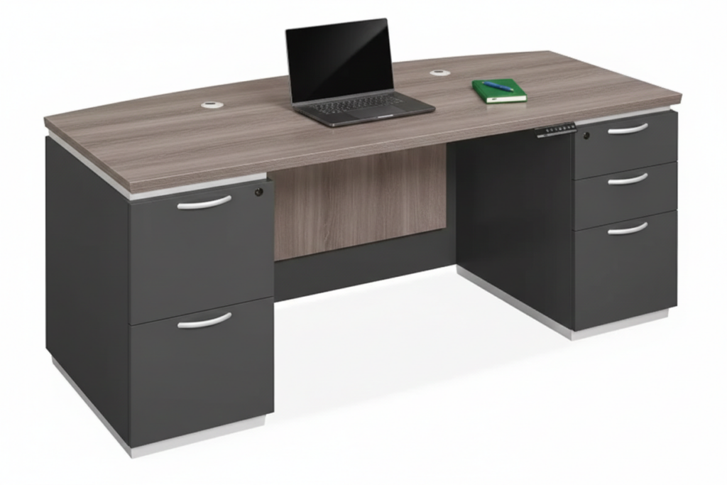 Bow Front – Attractive design with 6″ of extended desk space to spread out your work.