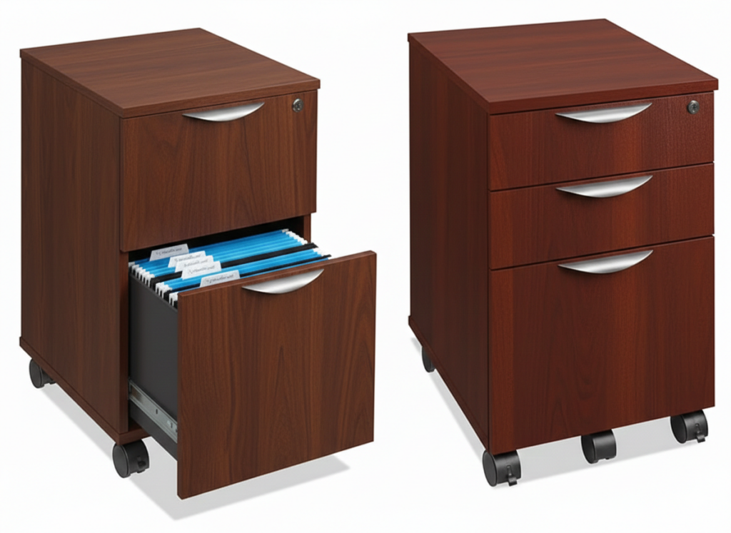 2-drawer mobile pedestal files for convenient, lockable storage.