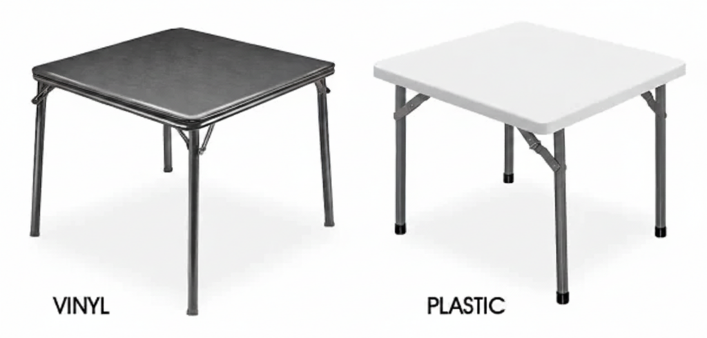 Plastic – Strong and sturdy for office projects and catered events. Blow-molded polyethylene top. 29″ height.