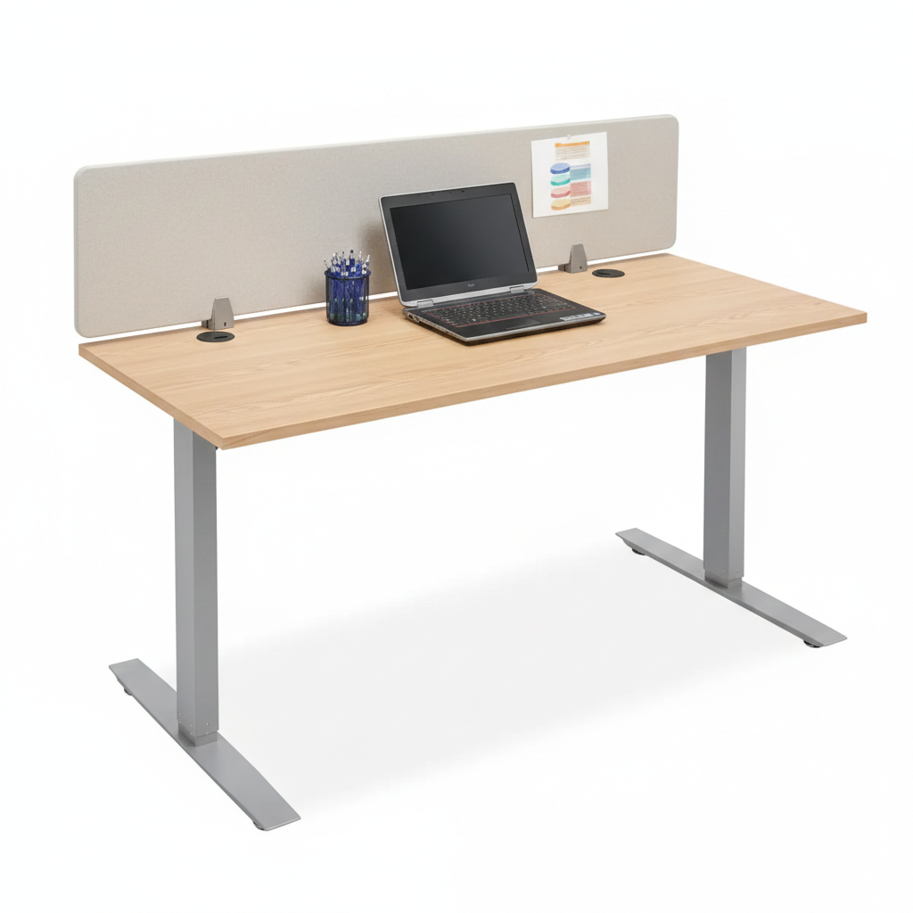 Tabletop partition adds privacy and reduces distractions in open offices.