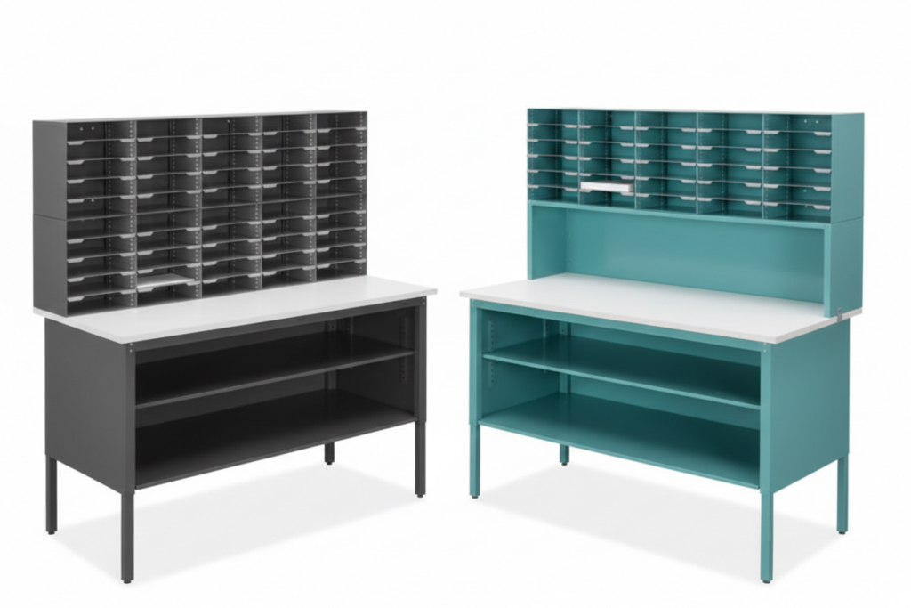 Extra workspace and convenient storage for the busiest mailrooms.