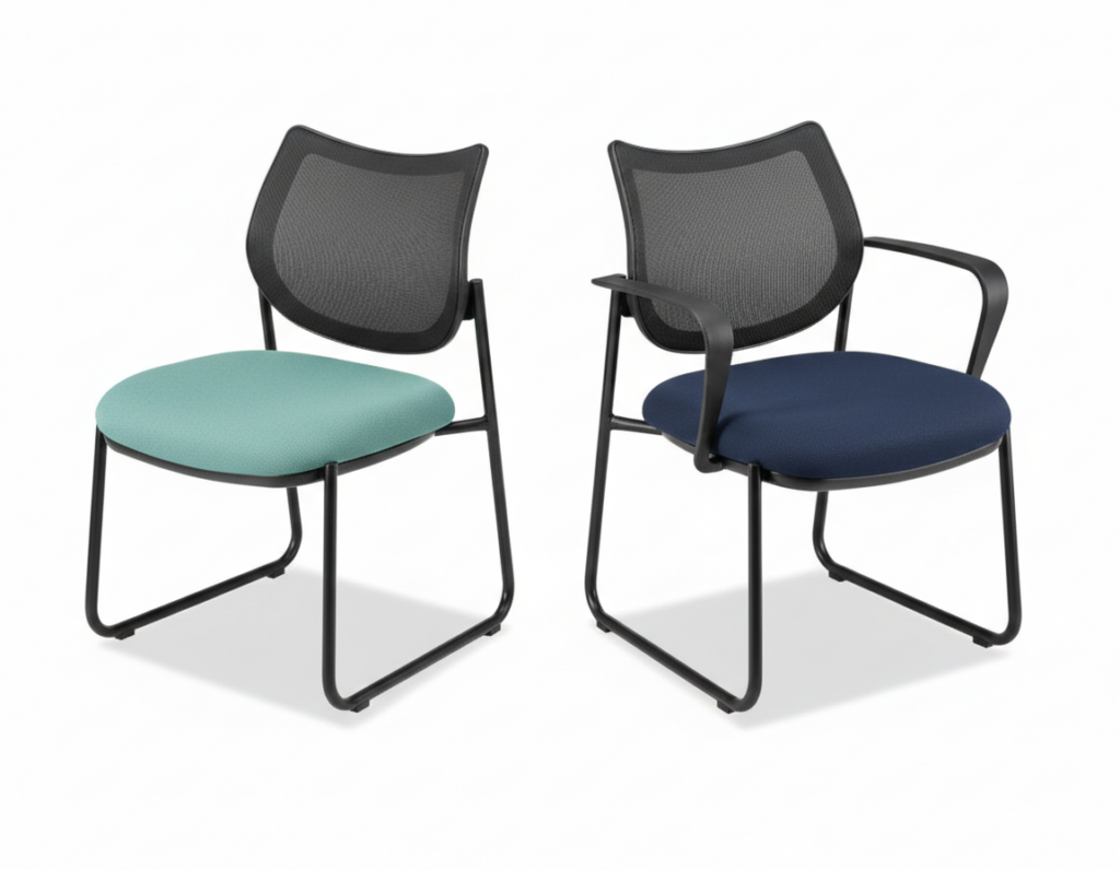 Breathable mesh comfort for lobbies and offices.