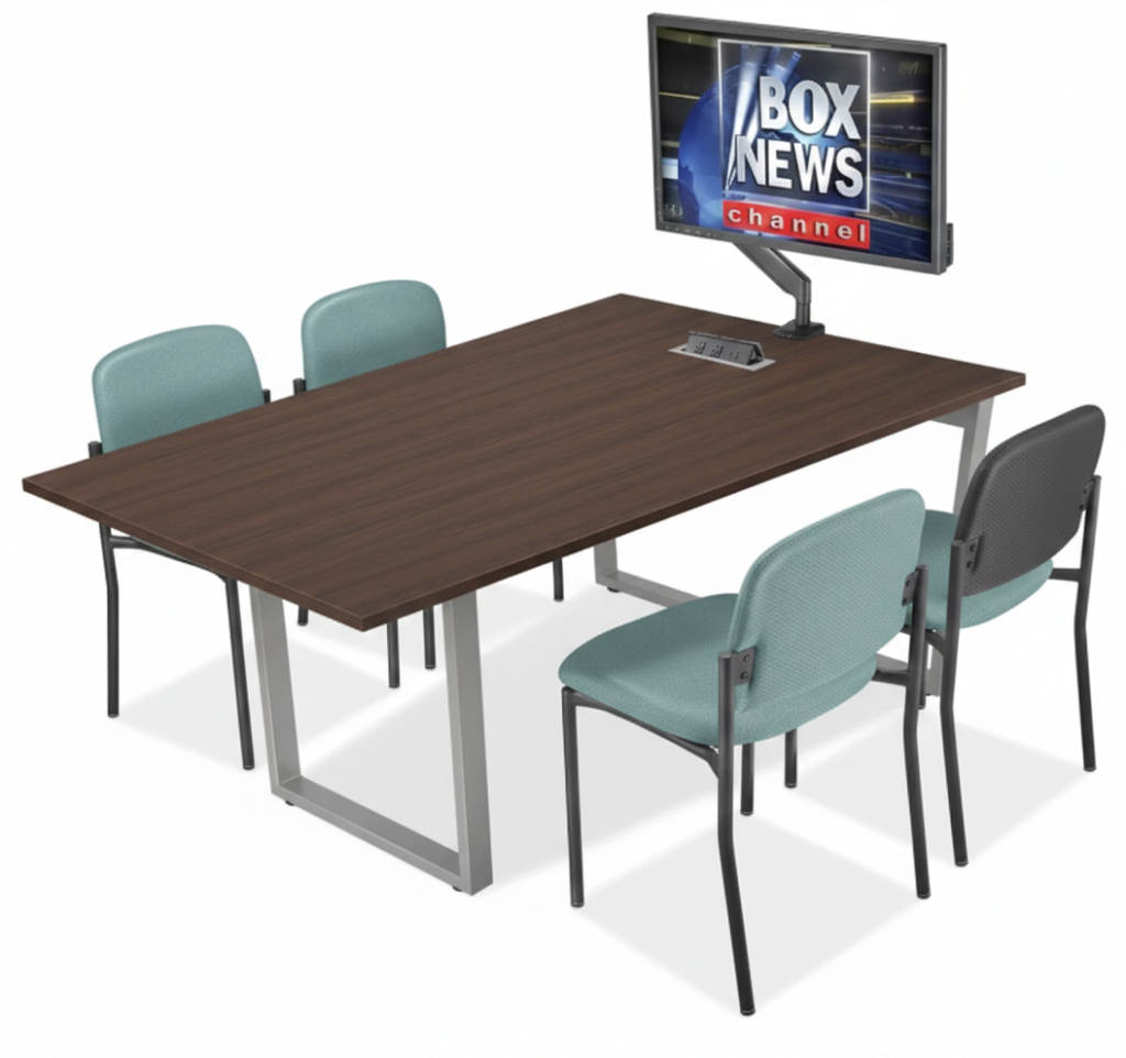 Durable, 1 1/2″ thick laminate top with 2 cable grommets.