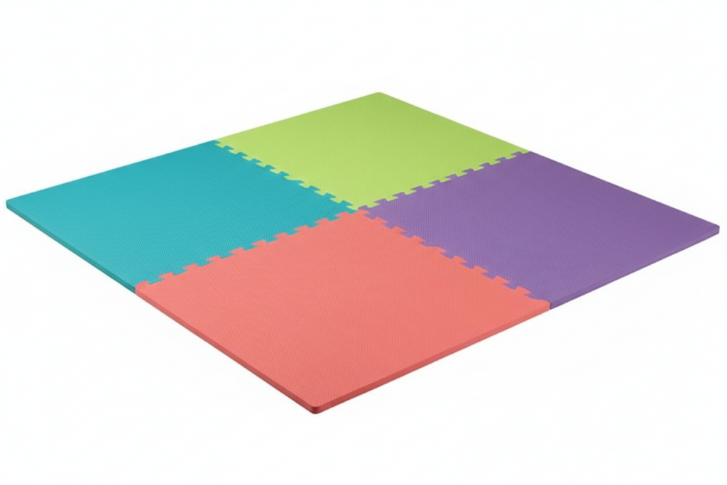 Interlocking foam floor tiles assemble in minutes.