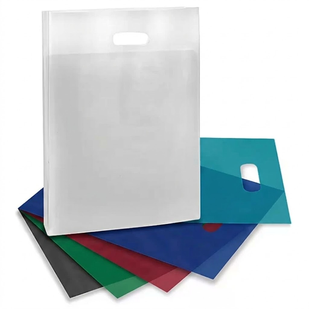 Die-cut handles and pinched bottoms.