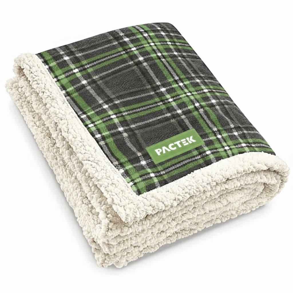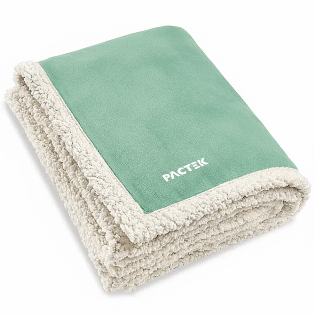 Reversible microfur with super soft faux lamb’s wool.