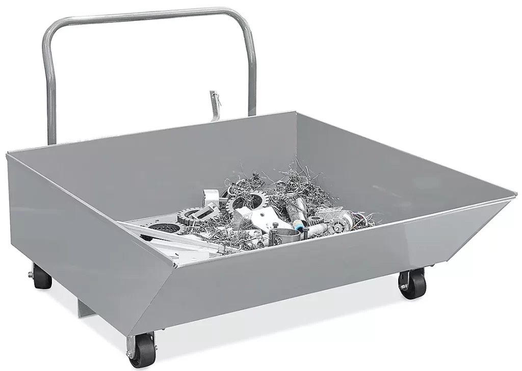 Reduce cleanup time in machine shops and job sites. Rolls easily underneath machinery to catch finished parts or scraps.