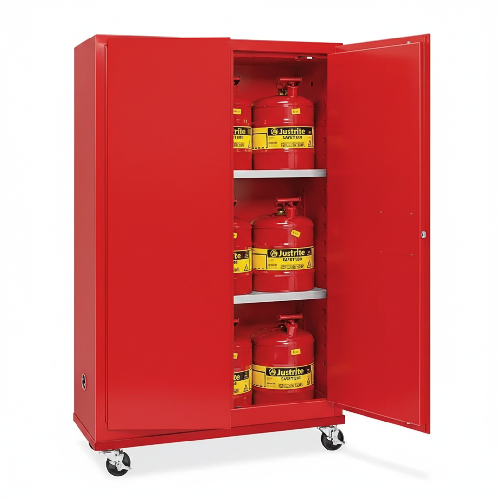 Yellow powder-coat finish. For aerosols, gasoline and flammable liquids.