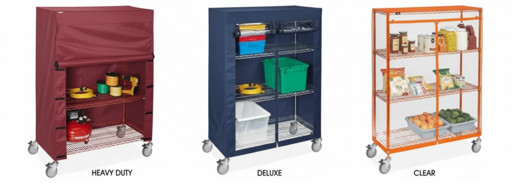 • Slip easily over mobile, wire and slanted shelving. • Flexible, water-resistant material. Fold and store when not in use.