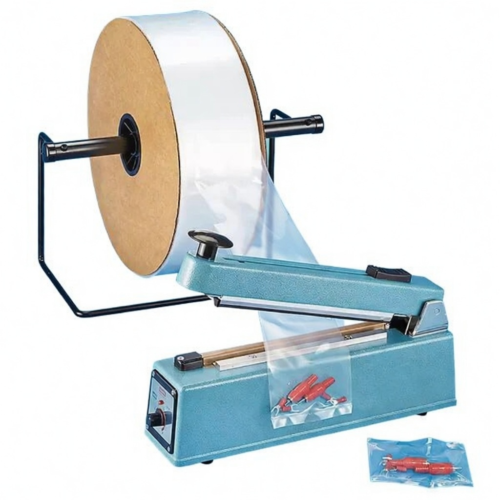 Use Poly Bag Sealers for a quick, easy seal on rolls up to 24″ wide. Sold separately.