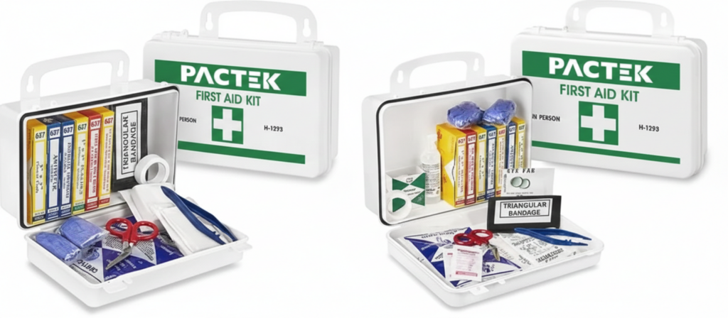 Deluxe first aid kits contain a full assortment of products for treating common workplace injuries.