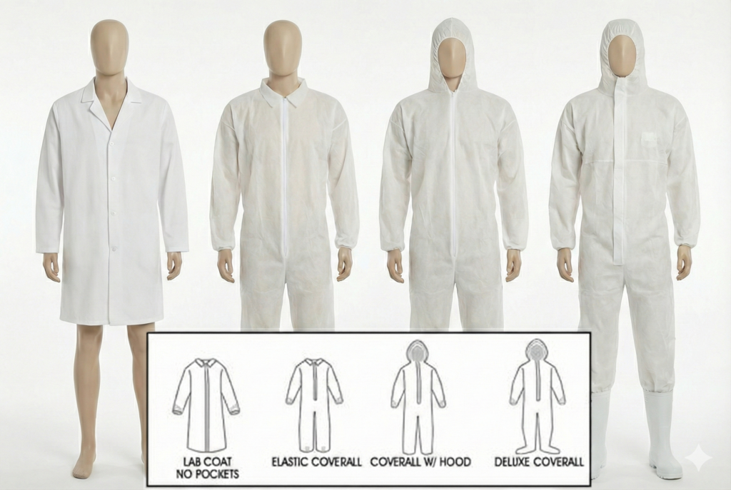 SMS 3-layer polypropylene material for extended wear. Resists tearing and abrasion.