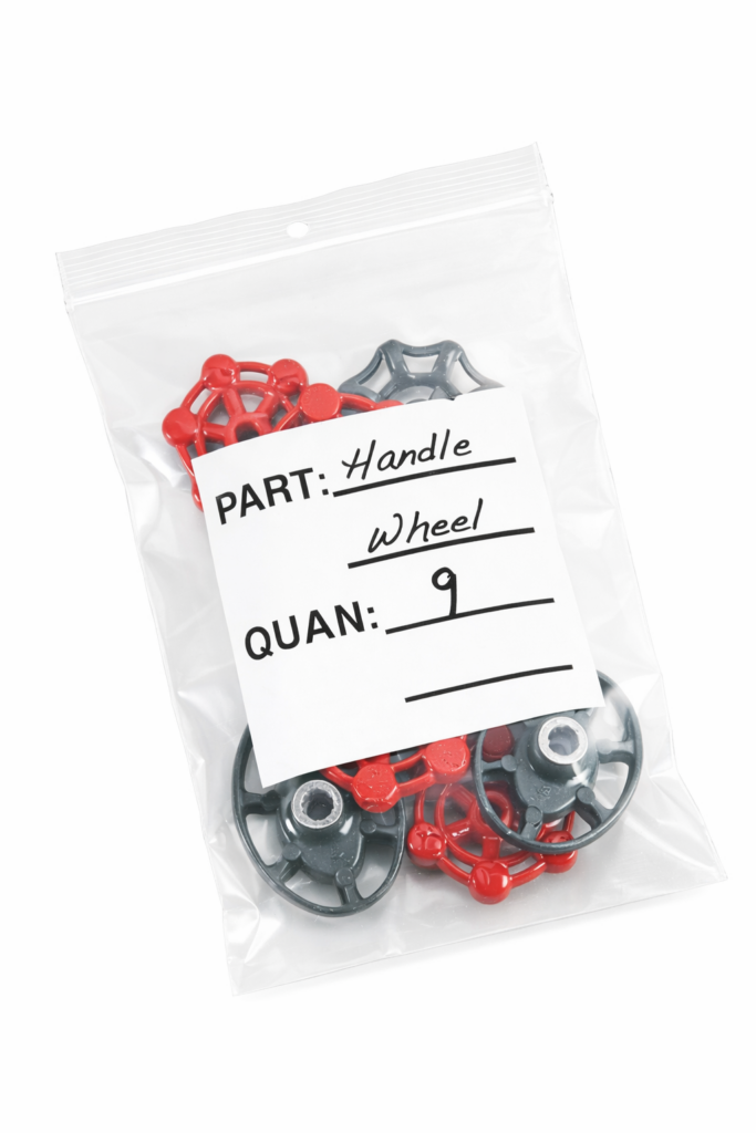 Easily identify part numbers and quantities with pre-printed white block bags.