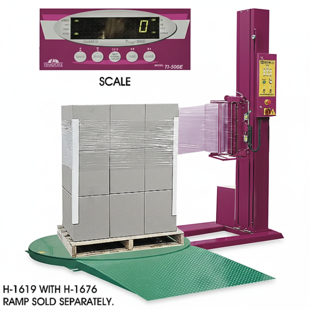Wraps approximately 20 loads per hour – 12 RPM variable speed turntable.
