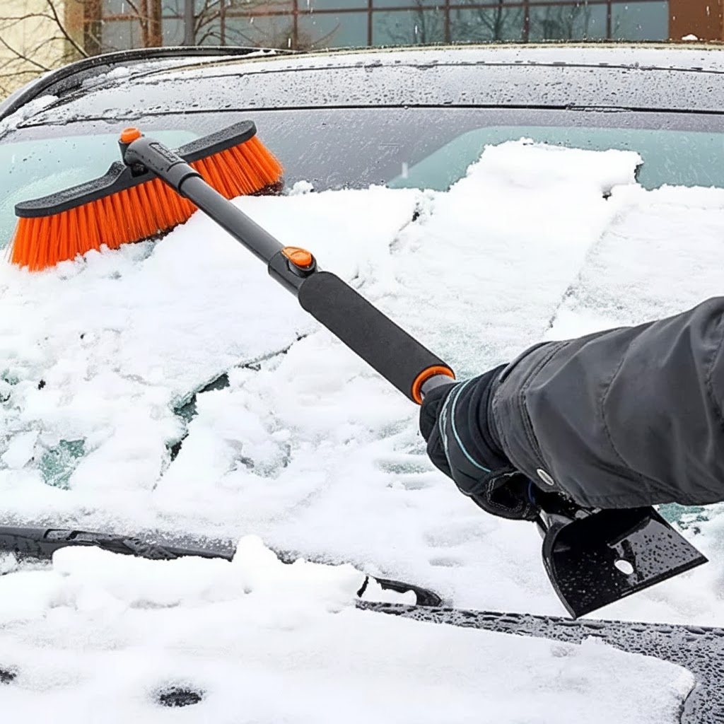 Durable plastic scraper and ice chipper.