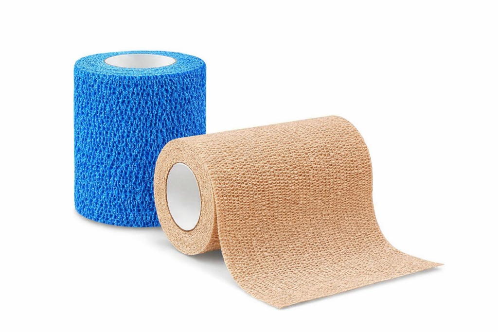 Elastic, breathable wrap sticks only to itself.