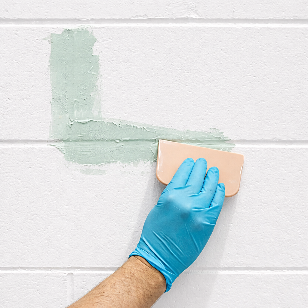 Thick formula spreads evenly on vertical surfaces. Non-shrinking and water resistant.