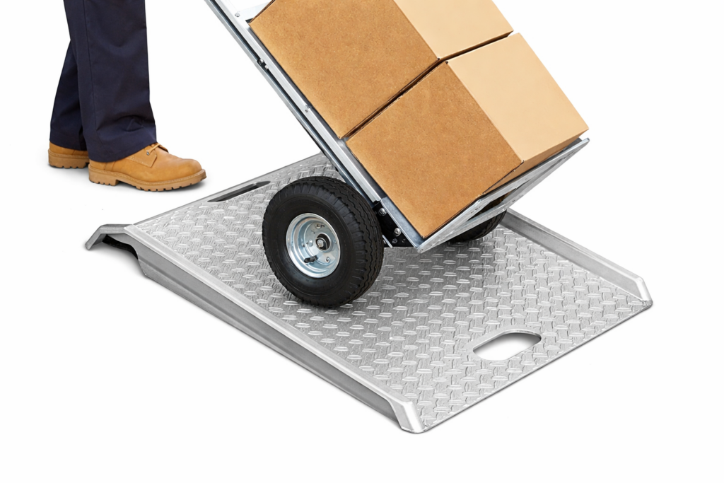 Curved edges prevent hand truck run off.