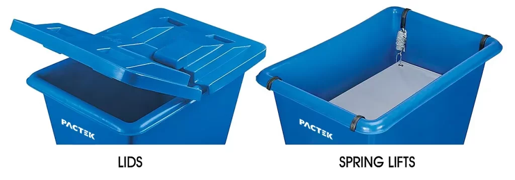 Spring Lifts – Keeps poly box contents at a workable height. Spring loaded. Raises and lowers for easy lifting