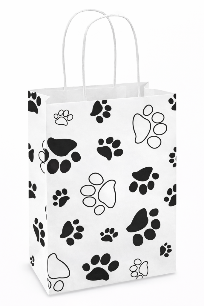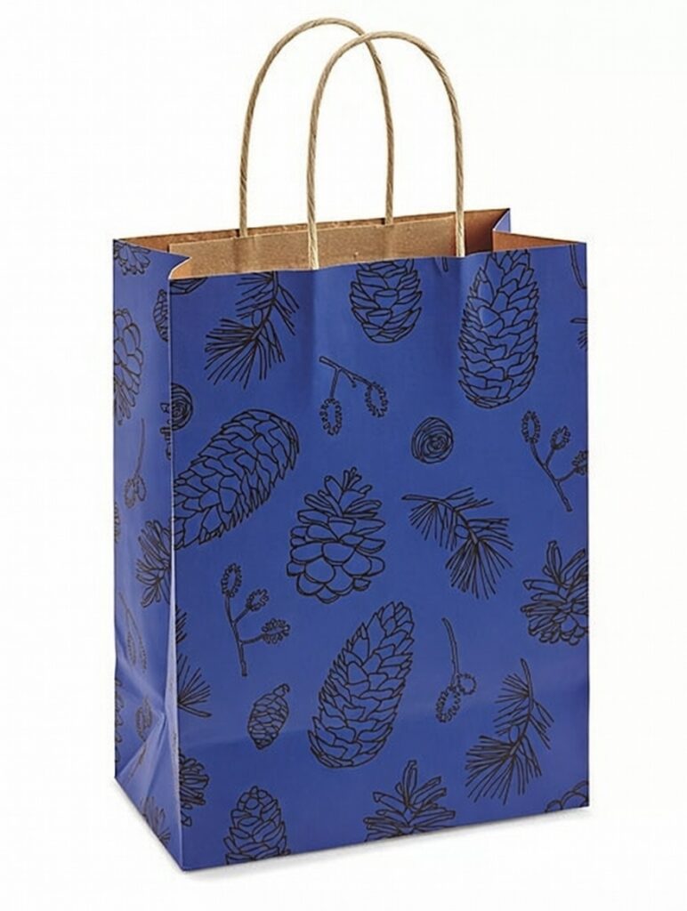Strong twisted paper handles make purchases easy to carry.