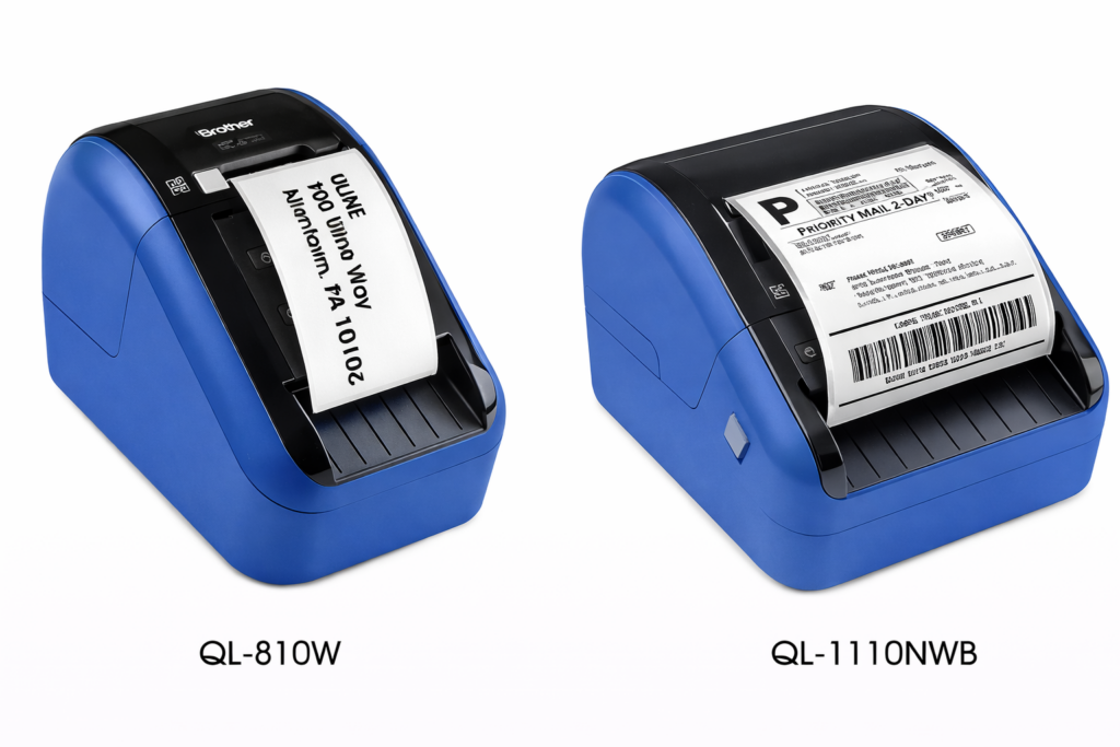 QL-1110NWB – Prints labels up to 4″ wide for shipping and postage labels. Up to 69 labels per minute.