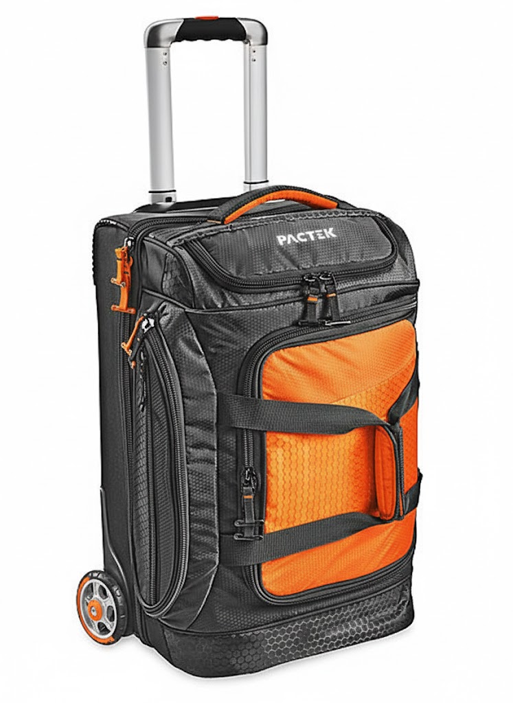 2 large internal compartments. 3 pockets. 2 adjustable straps.