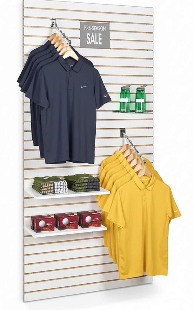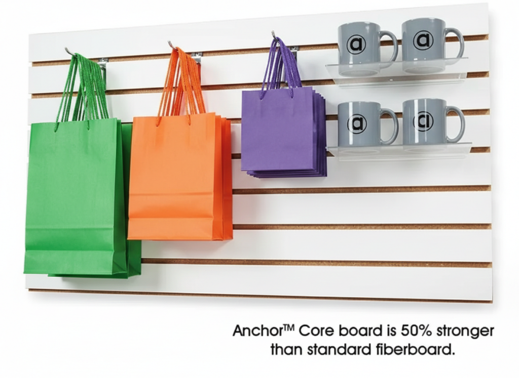 Inserts – Double slatwall weight capacity. Simply slide metal into slatwall. Sold separately.