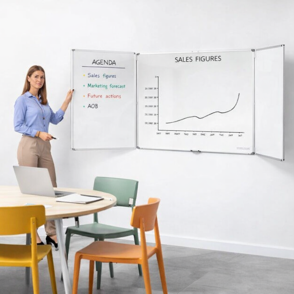Triple your writing space with this folding whiteboard system
