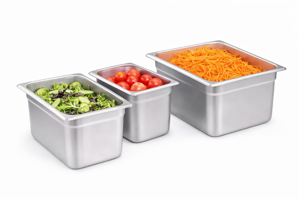 Holds cooked pasta, sauces, toppings and vegetables.