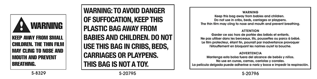 Caution against child suffocating hazards.
