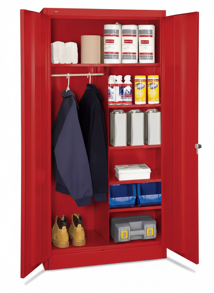 22-24 gauge steel supply cabinet with 22 gauge steel shelves.