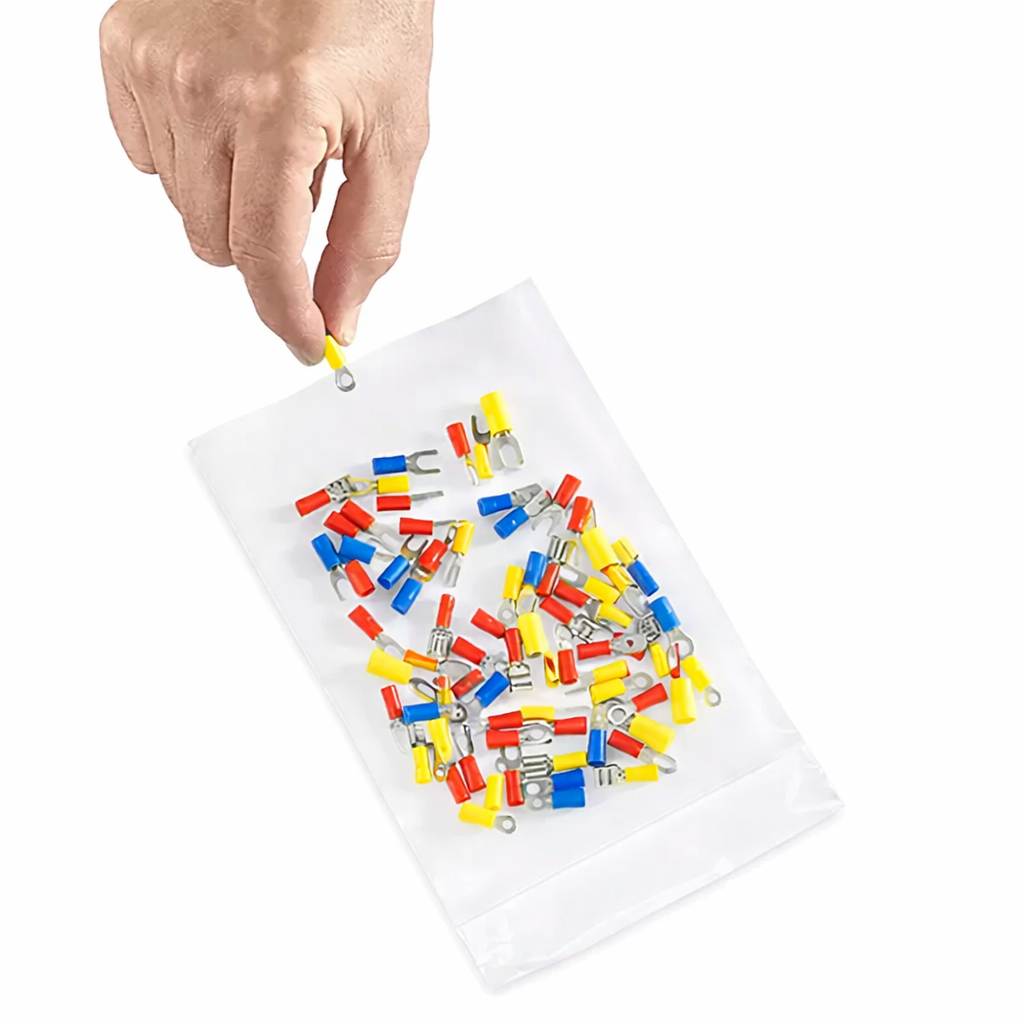 Load items into bottom of reclosable bag. Heat seal shut with Poly Bag Sealers.