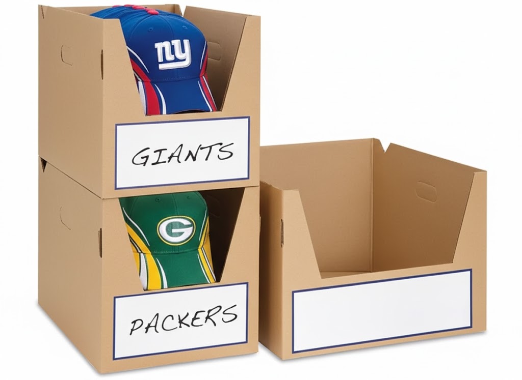 Tall shipping boxes open on ends.