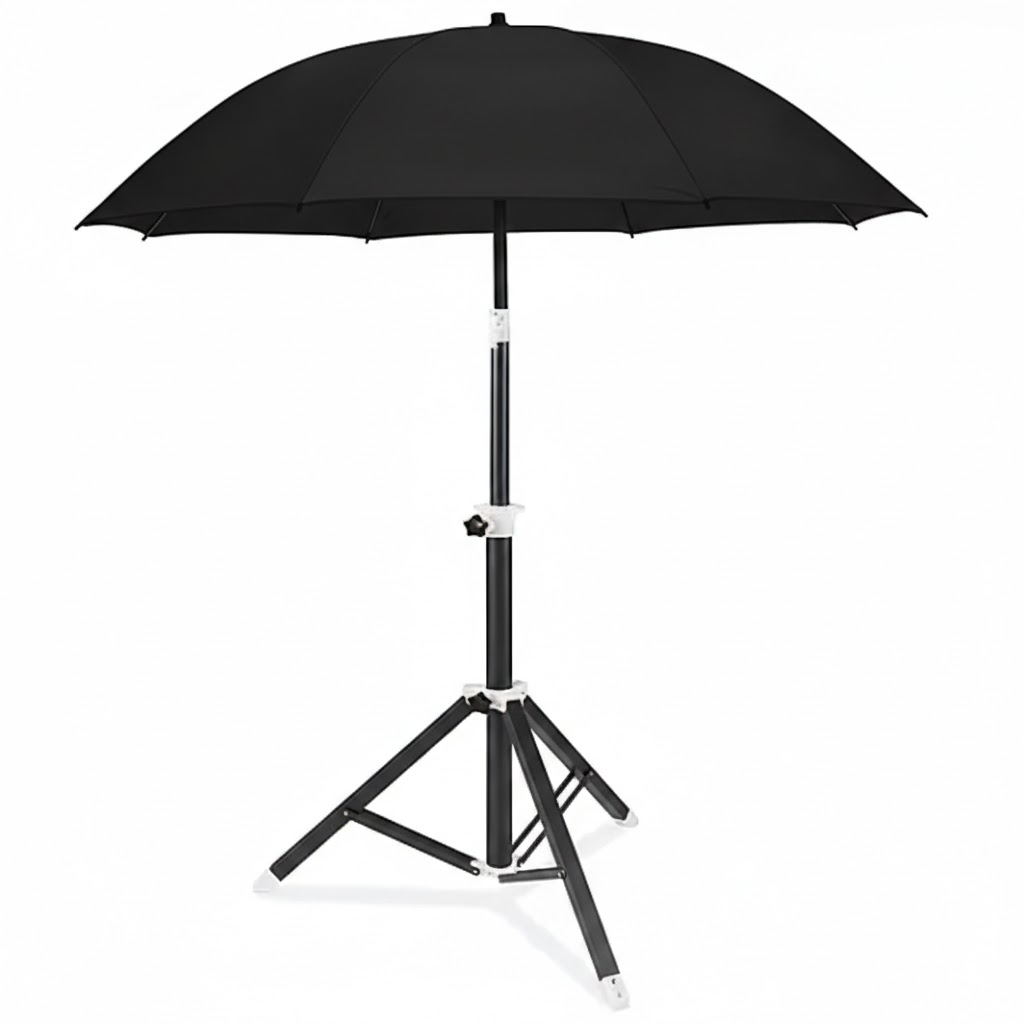 Adjustable, powder-coated steel pole and 39″ wide tripod base.