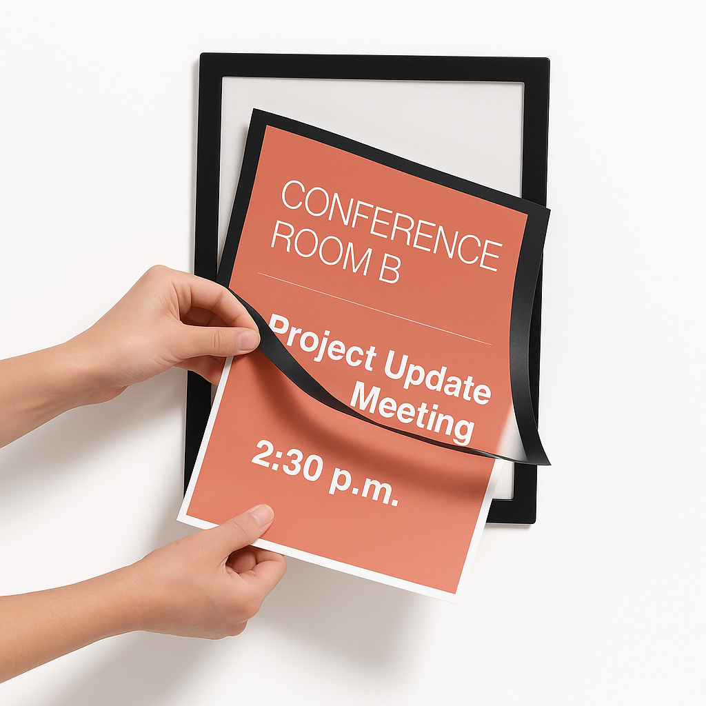 The U-frame’s top load design allows for easy insertion of printed material