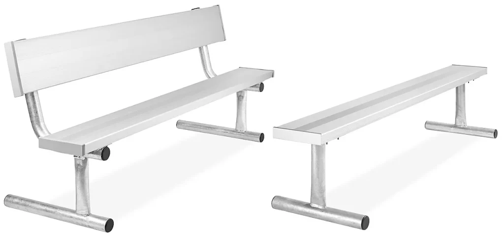 10″ deep aluminum benches and foot rails.