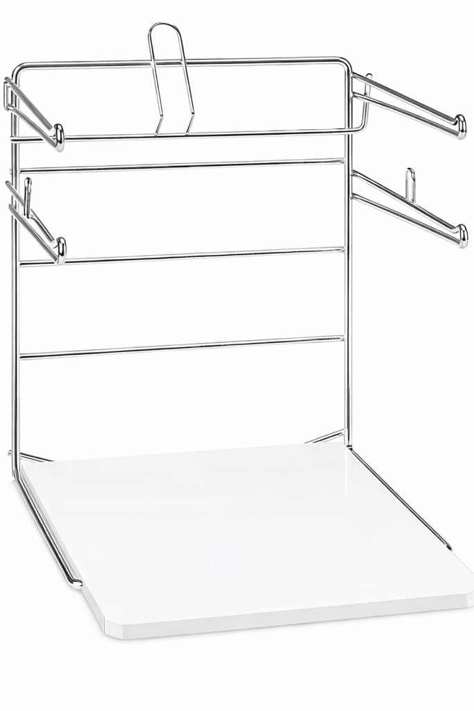 BAG STANDS – Holds 100 t-shirt bags for easy opening and packing.