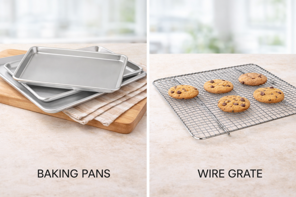 Wire Grates – Elevate food off the pan during cooking and cooling. Corrosion-resistant stainless steel mesh for even airflow.