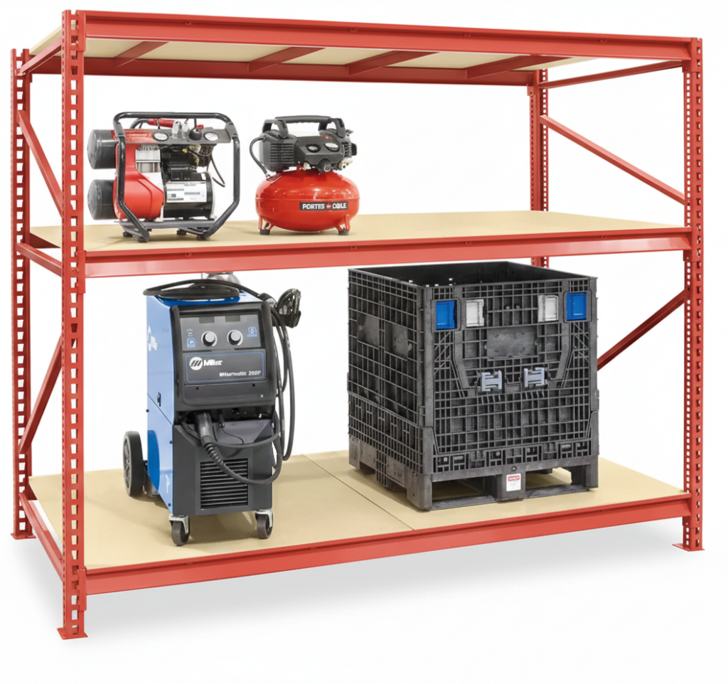 Store heavy dies, tools and motors. Steel shelves will not warp.