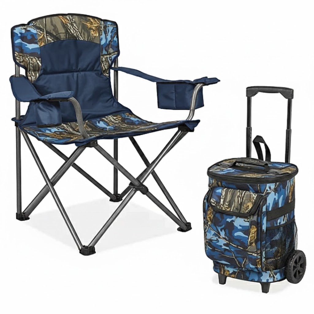 Camp Chair – Built-in cup holder and insulated cooler. 400 lb. capacity.