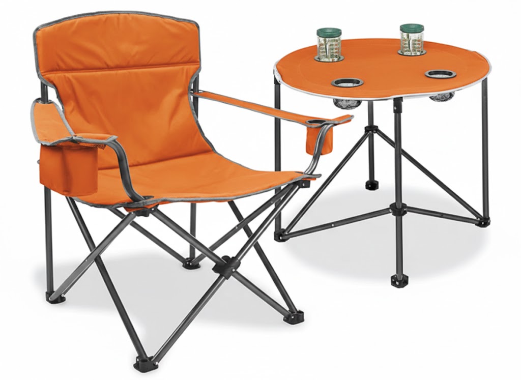 Camp Chair – Sit comfortably as you relax by the campfire. Built-in cup holder and insulated cooler. Durable, extra-wide seat. 400 lb. capacity.