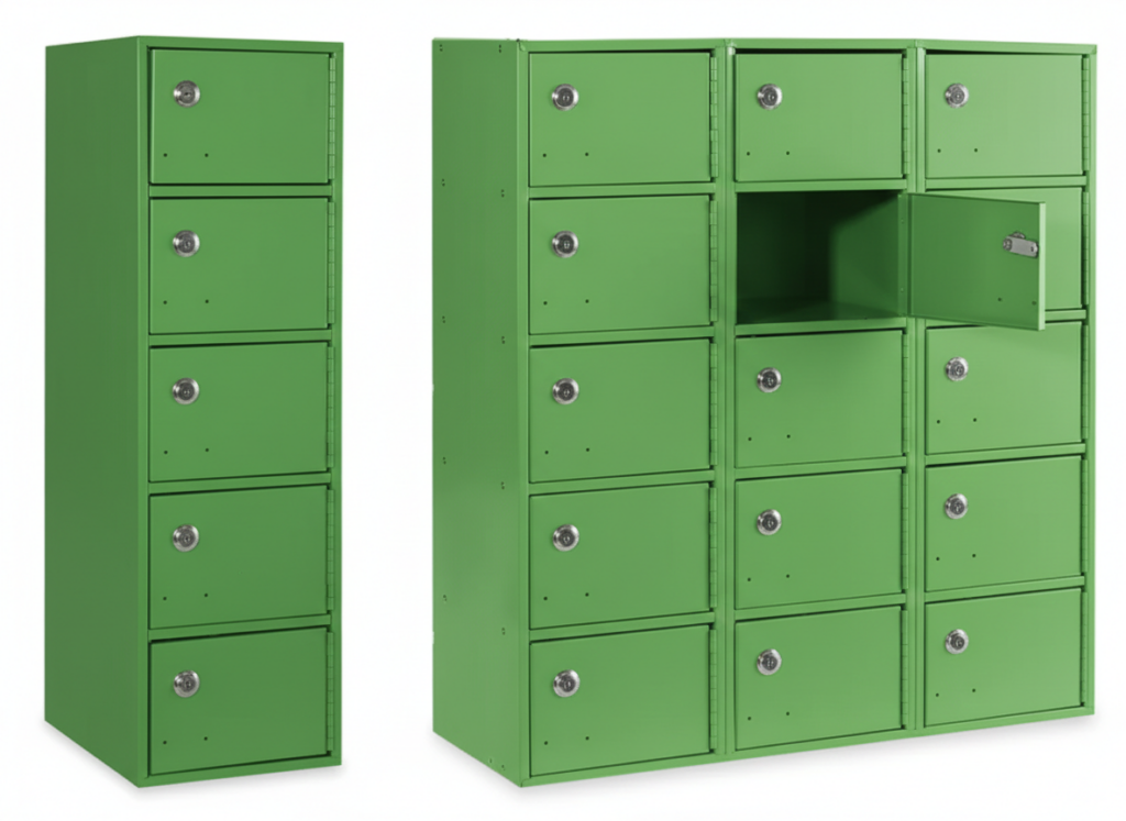 Secure storage for cell phones, wallets and keys in schools or fitness clubs.