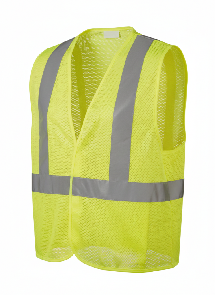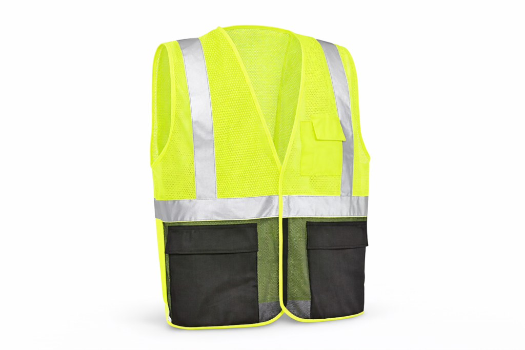 Hi-Vis Vest: Breathable polyester mesh. 1 inside, 2 outside pockets.