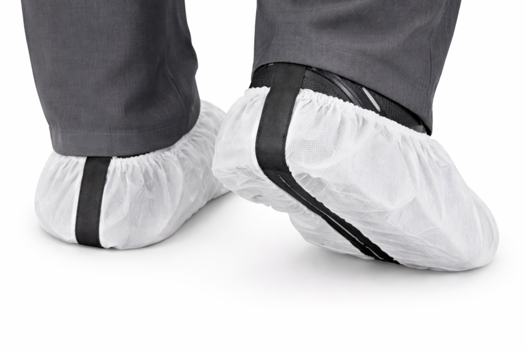 Place 20″ conductive strip inside shoe under heel.