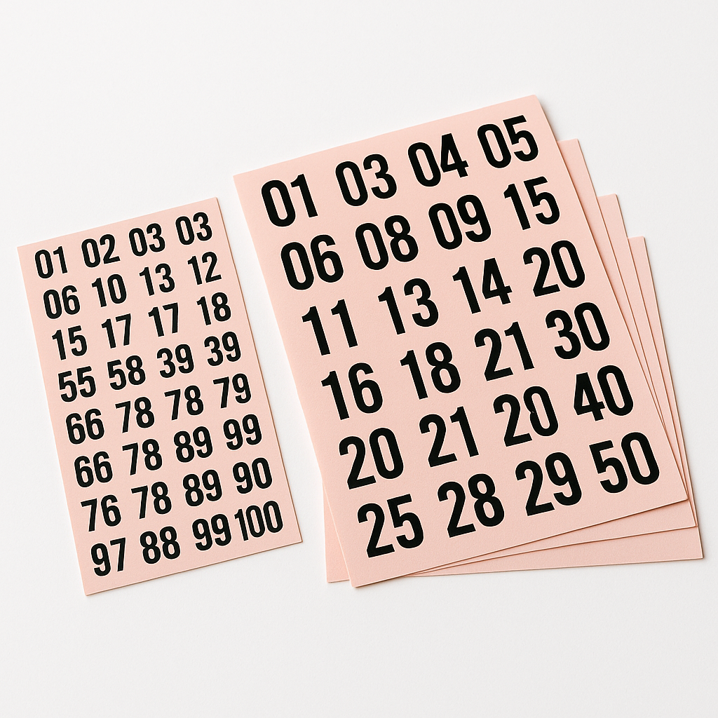 All the numbers 1-100 printed onto self-adhesive easily identifiable labels. It’s a quick and easy labelling solution for large spaces or when many items that need numbering.